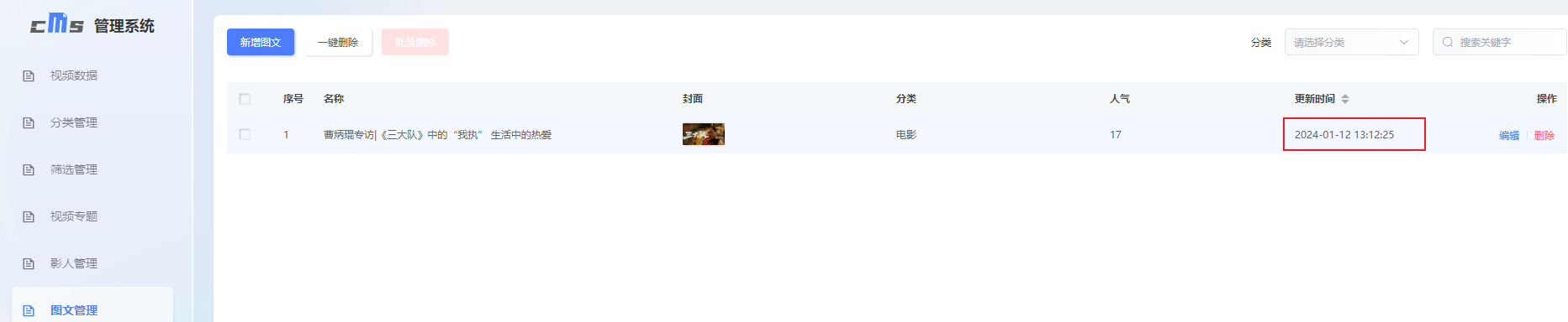 更新规则选择大于图文更新时间,当采集数据与库内数据一致(名称和分类相同),并且采集数据的更新时间大于库内图文的更新时间时,则将符合的图文数据进行更新